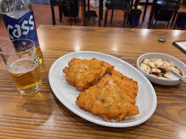 厚みのあるチヂミですが、カリッと焼かれていてサクッと食べれました。