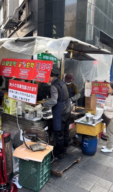 南大門市場はソウルで最も古い歴史のある市場で地元の人や観光客で常に賑わっている。こちらのお店は「南大門市場」のGATE2入口に位置し、シナモン風味の黒砂糖にナッツがアクセントになった「黒蜜ホットク」や玉ねぎやにんじんなどの野菜が入った、食事感覚でいただける「野菜ホットク」の2種類が人気メニューとなっている。