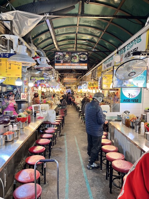 どの店も数人のおばさんがチームプレーでお店を切り盛りしていて活気が凄いです。ネット情報によれば、南海食堂は三姉妹で営業しているみたいです。なお支払いは現金(ウォン)のみなので注意。ごちそうさまでした。