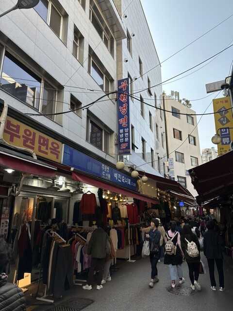 南大門市場で1960年に創業!平壌式の冷麺店「プウォン麺屋(ミョノッ)」は、南大門市場(ナムデムンシジャン)の中にある1960年創業の老舗の冷麺(ネンミョン)店。地下鉄4号線・会賢(フェヒョン)駅近く、青色の細長い看板がついた商店街ビルの2、3階にあります。冷麺の本場・平壌(ピョンヤン)式を掲げており、平日昼時には年配者から若者、会社員まで長蛇の列を成すほどの盛況ぶり。自家製麺は太めでやわらかく、牛すじ肉などで煮込んだ酸味のある冷たいスープも逸品です。茹で鶏肉を辛い特製薬味で和えた豚肉の辛味あえや緑豆チヂミ(ピンデトッ)もサイドメニューに人気です。