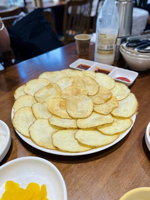 本当は辛いカルグクスが食べたかったのですが、2人前からだったので、普通のカルグクスとじゃがいものチヂミをオーダー(一人ですが…笑)