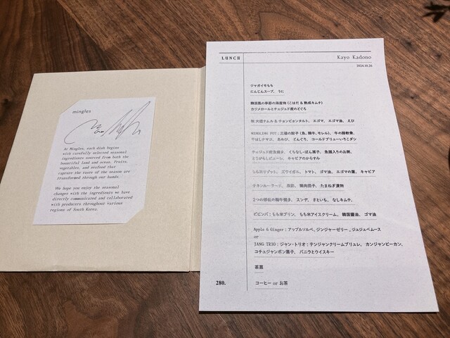 280Kウォンのお任せコース。なんと日本語メニュー!