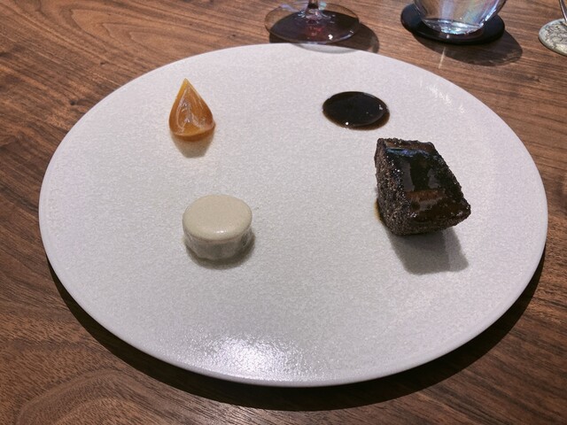 バニラのアイス、ウイスキーのムースをベースに3種の韓国醬で仕上げるというかなり斬新なデザート。