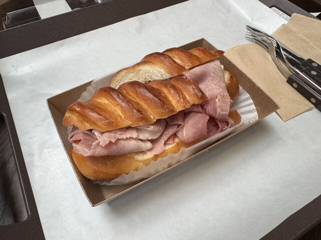 サンドウィッチはハムとチーズがたっぷりで美味しいです〜。