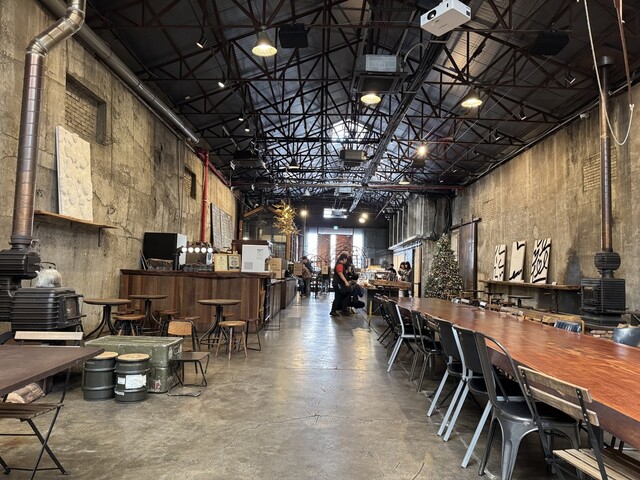 倉庫を利用した広々としたカフェです〜。