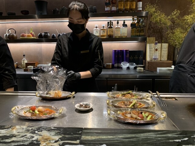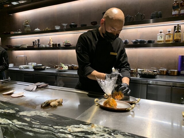 ポルシェショールーム裏の飲食店ビル4階鉄板焼店。カウンターで基本現地食材、キャビアも韓国製とのこと。味付け塩・辛さ強めですが許容範囲内。手際良く、海鮮お味よろしくサービスも抜群、テンダーロインステーキさえ良ければ2つ星でもいいかなと思えるレベルです〜(๑˃̵ᴗ˂̵)