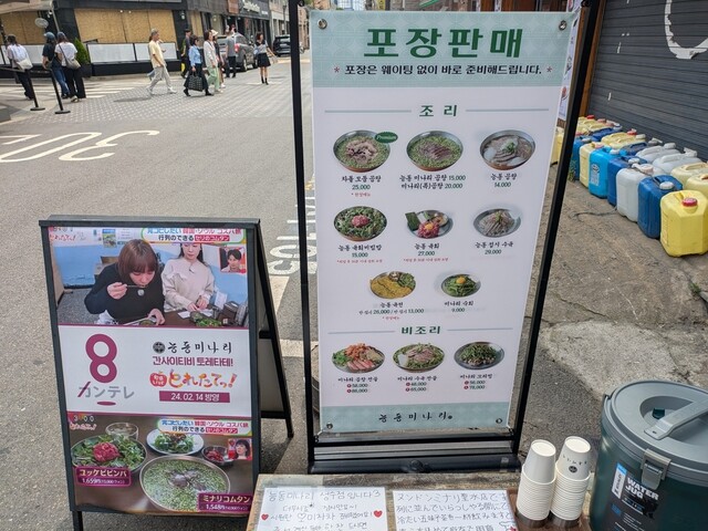 韓国ソウルの地下鉄2号線 聖水駅(ソンスヨッ) 4番出口より徒歩2分程にある、ミナリ(セリ)をたっぷり使ったユッケビビンバやコムタンが食べられる、行列のできる人気の韓国料理屋 【陵洞(ヌンドン)ミナリ 聖水店】