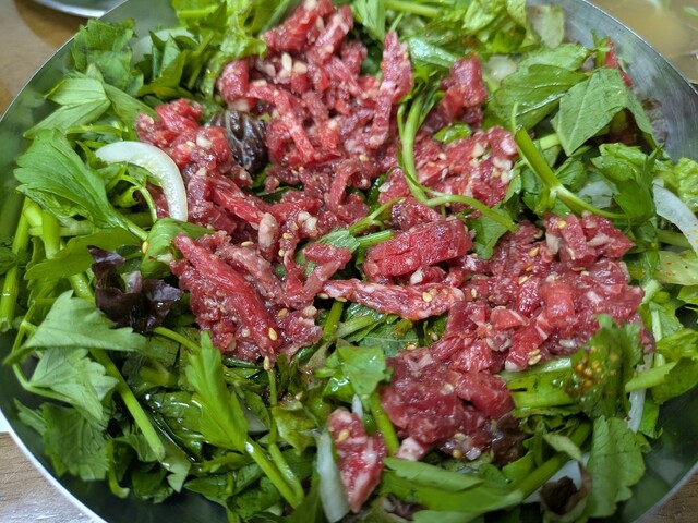 韓国 ソウル 聖水洞で大行列の人気店!ミナリ(セリ)たっぷりユッケビビンバが絶品なお店~