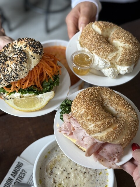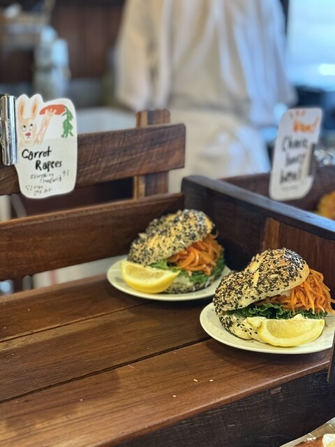 ブリックレーンベーグル (Brick Lane Bagel): ゴマがかかったベーグルにクリームチーズがたっぷり入っており、別添えのハチミツをかけて食べると絶品です。6,000ウォン