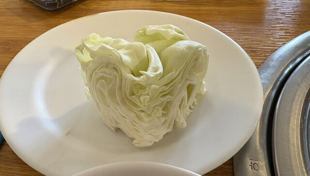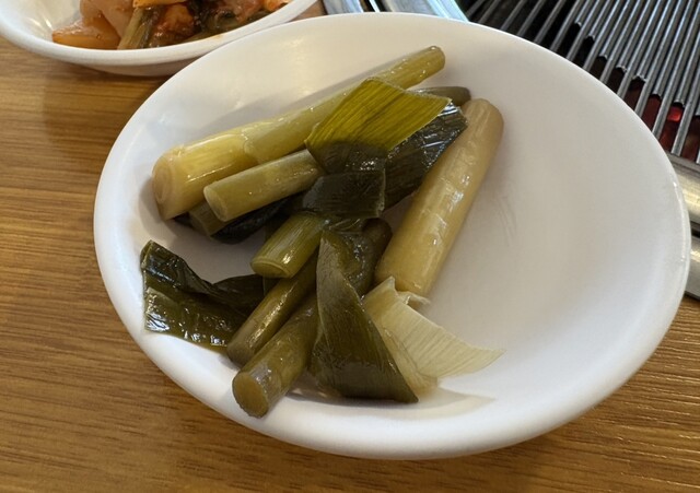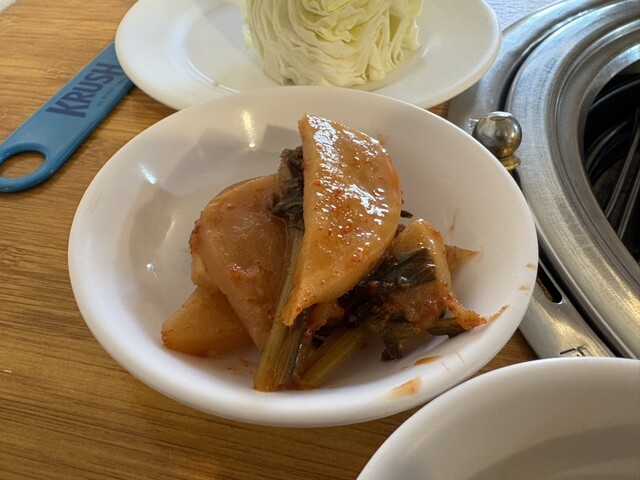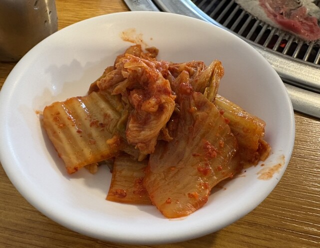 オーダーするとすぐに店員さんがキムチやキャベツなどのおかずを提供。