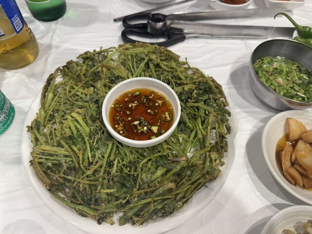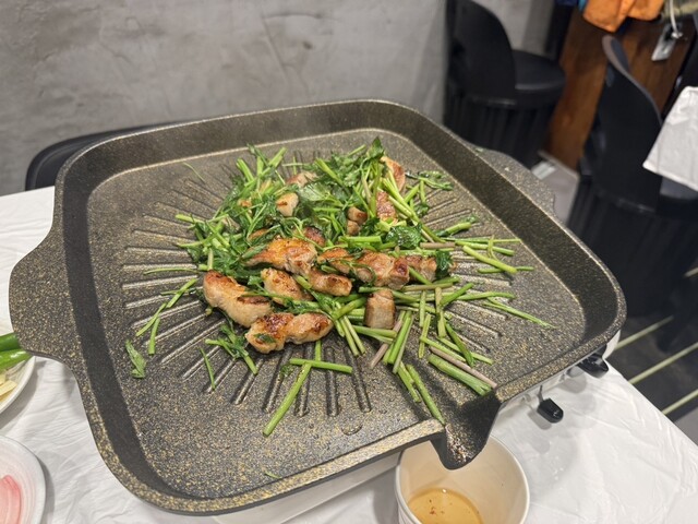 韓国の豚肉は美味しいですね。セリのチヂミも美味しかったです。