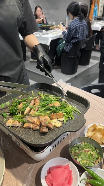 炒めたセリとサムギョプサルがなかなかいいマッチング!!