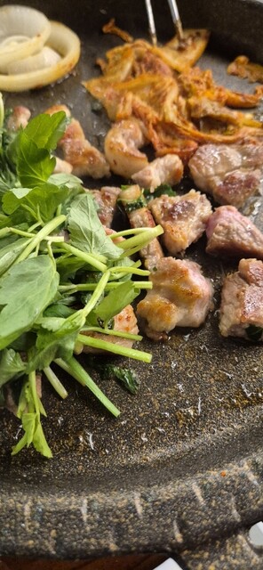 ここ1年ほど韓国でブームになっている“ミナリ”。合井(합정)の「청도미나리식당」は農家直送のミナリを使う人気店で、その香りと鮮度が段違い。