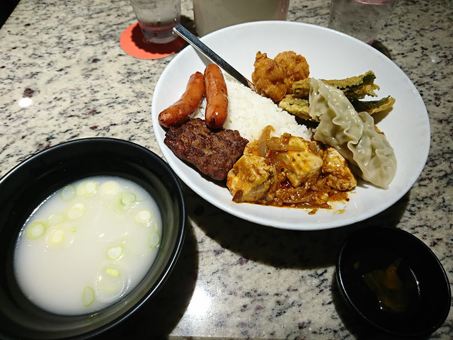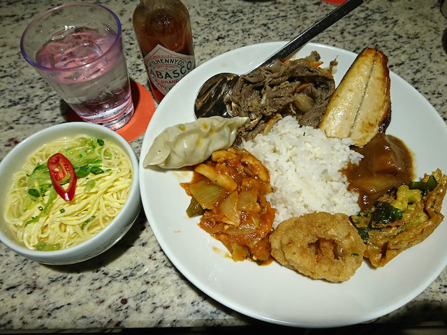 ウォーカーヒル(カジノ)内にあるビュッフェスタイルレストランでの食事です。韓国料理含め、10種類前後の料理が並んでいます(プレイヤーは無料で頂けます)。ごちそうさまです。