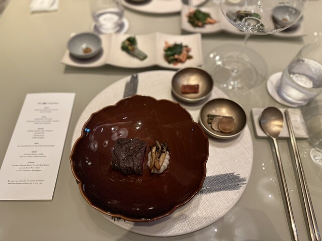 時差投稿ですが、韓国ではなかなかおしゃれなお店に行くことがなかったですが、こちらは凄かった。出張でのミーティングの際に、ご用意いただいたのですが、どのお料理も見ただけではなんなのか分からず、(説明されても理解が難しい)でも食べたら韓国の味を感じつつも絶妙な味のものばかりでした。