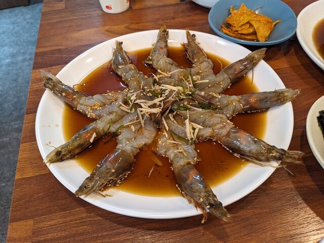 ついつい頼んだカンジャンセウは、同じ味付けで飽きるかなと思いきや、辛くないのにもっとスパイスの香りが効いたスタイルで鼻に抜ける香りが特徴です。エビそのものの甘みとタレの甘さがとてもマッチしていてクセになりました。エビの身はカニよりねっとり感つよめで、いつの間にかペロリとなくなっていました。