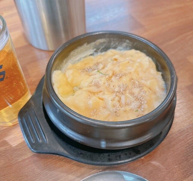 バンチャン(おかず)はキムチ、カクテキ、おでんの和え物、海苔、ケランチム。ケランチムがふわふわでごま油の香りもよく、美味しかったです。ついつい食べちゃう美味しさ。