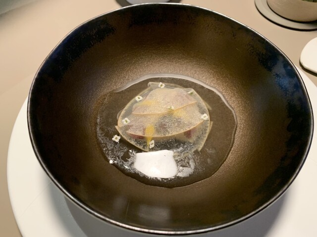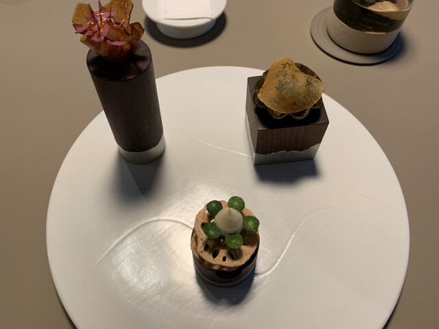 漢南IC近くの2つ星イノベイティブ、コンプレックスビル2階にあり、エントランス正面にオープンキッチンと特異なレイアウト、テイスティングメニュー1択、ワインはペアリング他、それぞれ3択選べます。イノベイティブの割にはまずまず(๑˃̵ᴗ˂̵)
