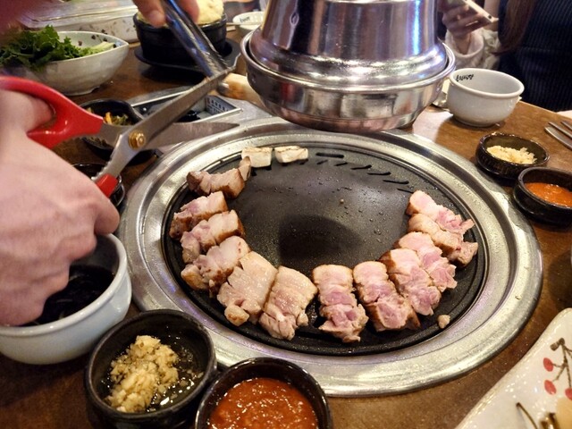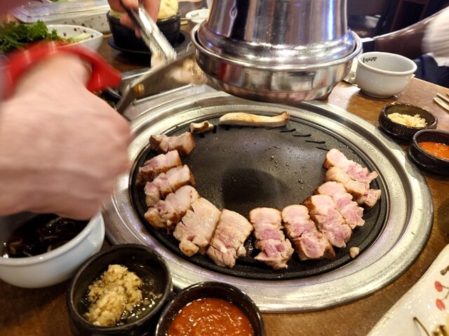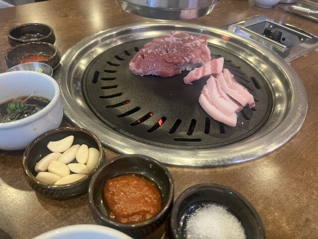 韓国なら、サムギョプサルが、食べたくてガイドブックなどで調べて人気があったので、伺いました。