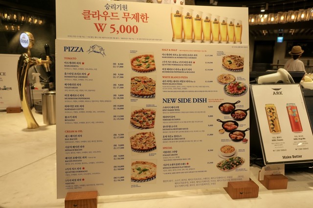 ・Kloudビール無制限(※Lサイズのピザを頼んだ場合のみ) 1人5000₩