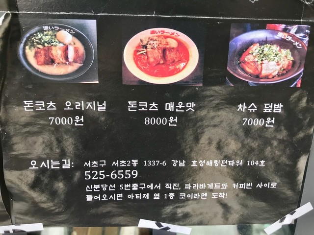 味は結構本格的で今まで韓国で食べたラーメンでは一番美味しかった。日本のラーメン文化をよく研究してると思う。一杯7000₩という価格設定も韓国の外食の物価を考えたら安い。