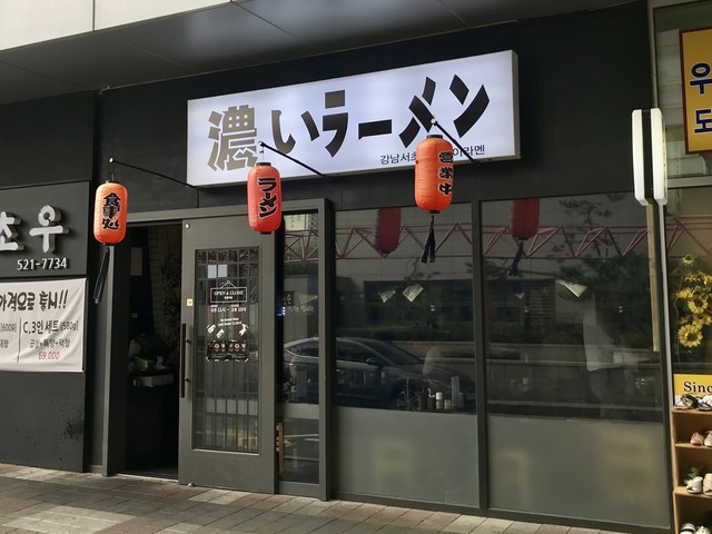 江南(カンナム)で見つけたラーメン屋、その名も「濃いラーメン」。ソウル市の南の城南(ソンナム)市に本店があるラーメン店。こちらの江南店は2018年1月にオープンしたばかりらしい。