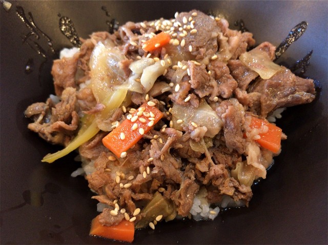 料理は左が「소불고기덮밥」(牛プルコギ丼・9000ウォン)、右が「간자장면」(カンジャジャン麺・6000ウォン)。カンジャジャン麺ってのはソースと麺が別々に出てくるイメージがありましたが、見た感じ普通のジャジャン麺と変わらないです。