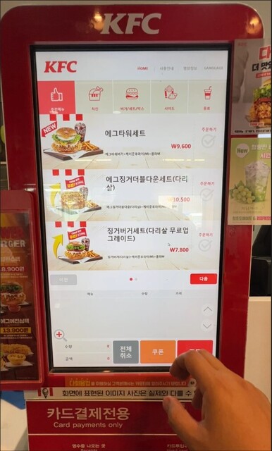 ケンタッキーと言えば、世界中にあるファストフード。しかしその国のオリジナルメニューが有り、それはその国に行かないと食べられない。今回、オリジナルチキンも食べてみたかったが他に食えなくなるので、オリジナルのチキンバーガーを一つ注文。オーダーはハングル表記で自分で券売機で頼むシステム。これがなかなか分からない。でもやってるうちに何となく注文出来た。後ろに並んでる人はいらっとしたろうな。さてこのバーガーはバンズの代わりにチキンになっている。中にはベーコンとハッシュドポテト。いやはや、ジャンク!食べごたえありのバーガーでこれは日本でも売れそうだと思った。最後の方にやはり若干の辛さがあるが、韓国らしい味付けだと思った。そして、ドリンクはフリーで飲み放題。この方式、日本でも取り入れてくれないかなぁ。。