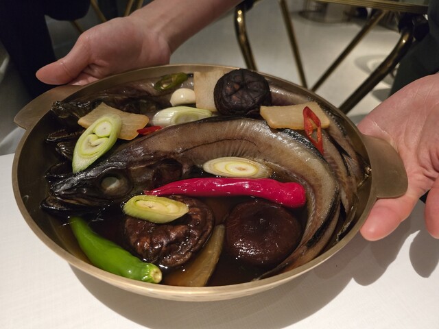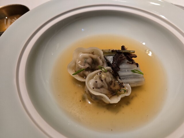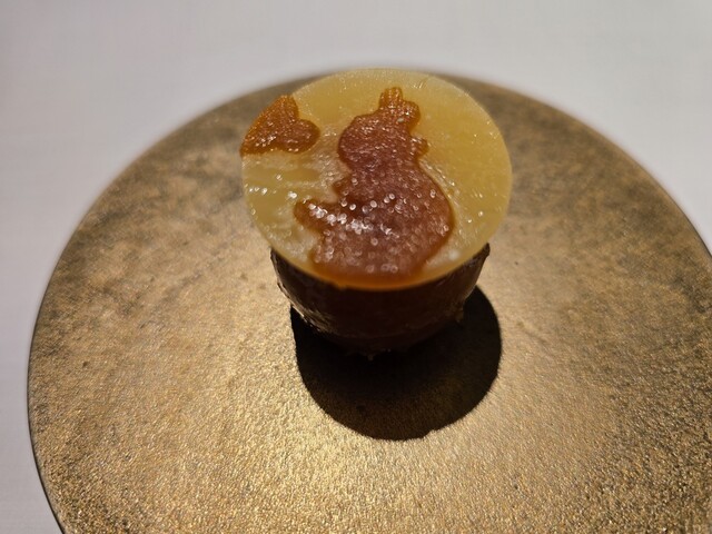 ソウルの江南地区にある★★★★★ホテル「ジョスン パレス・ラグジュアリー コレクション ホテル・ソウル江南」最上階36階にあるイノベーティブ「Eatanic Garden」。ミシュラン2024★。ソン・ジョンウォン シェフは、サンフランシスコ三つ星の「Benu」「Quince」、コペンハーゲンの「noma」などを経て、2018年韓国に戻り「L'Amant Secret」をミシュランガイドソウル2021年版で初代ミシュランスターに導く。ディナーコース320,000KRW。メニューもコースの説明もなく、代わりに主な材料を描いたカードが料理ごとにテーブルに置かれ、素材と料理へこめた想いの説明がある。料理は、韓国風イノベーティブで、素材を重視し、発酵と熟成の韓国料理の妙にフレンチの技法を加えて、ともすると単調になりがちな韓国料理を唯一無二の独創的な一皿に昇華させている。薄くスライスした椎茸で球形にチャプチェを包んだり、海苔で折り鶴を作ったりと遊び心も楽しい。