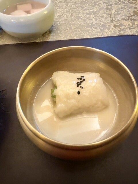 スラコースは、最上級の宮廷料理を再現した、「石坡廊」の自慢メニューで、見た目、味、香りと絶妙なハーモニーを奏でる高級料理。「チャングムの誓い」で出てきたメニューもあります。←と書いてありました(笑)