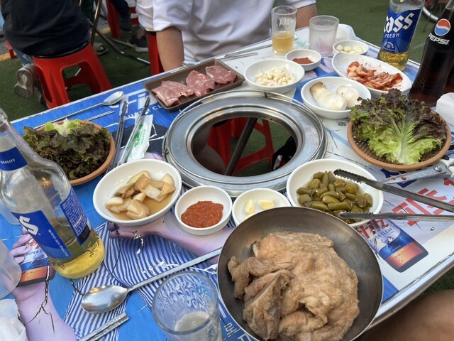 店先でローカル感たっぷりの路上テーブルで韓国焼肉を楽しみました。