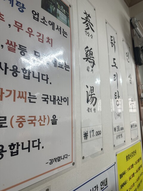 え もう満席なの なんとか一巡で入れました 韓国にありがちな 前菜 キムチ、ピキヌー、味噌、韓国海苔 じゃんじゃん出てきます 横からグツグツの参鶏湯登場 お肉はホロリと骨から外れ中には餅米かな お粥状態 クコの実や薬膳具材がたっぷり 塩気少ないので 入れて また キムチもスープ洗いして頂きます 流石としか言いようのない 参鶏湯 ほんと 暑さのなかで 汗が引きます これは凄い 参鶏湯は17000ウォン およそ1700円 すげー こりゃ並ぶね