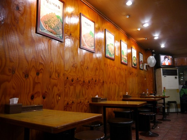 テーブルのみの店内は、庶民的な空気が流れる韓国の食堂的印象だ。