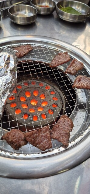 ソウルの友人を訪ねた時に立ち寄った、麻浦の有名焼肉通りにある1++韓牛専門店。七輪ではなく昔ながらの연탄(練炭)で焼くスタイルが特徴的。