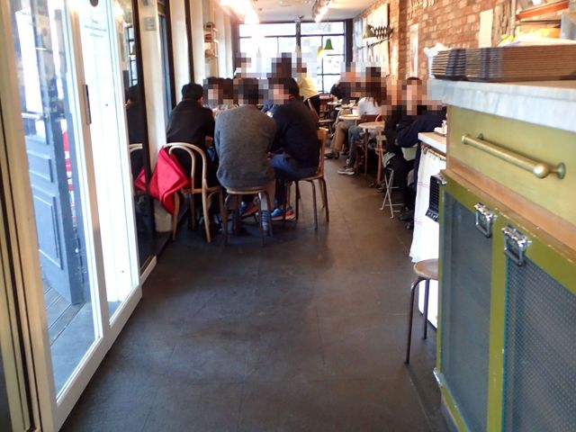 奥に細長いあまり大きくはないスペースですが、回転はいいですね。客足が途切れません。周囲では遅い時間にもかかわらず食事をしている客が多いです。