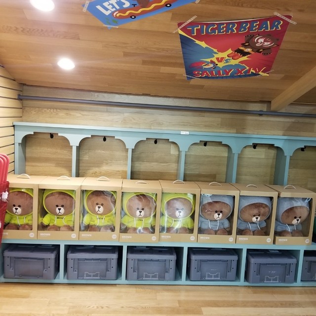 店内は撮影自由な上、ブラウンやコニー、ムーン、ジェームズなどのぬいぐるみなど様々なグッズが所狭しと並べられていて、なんとも可愛いのでしたカワ(・∀・)イイ!!