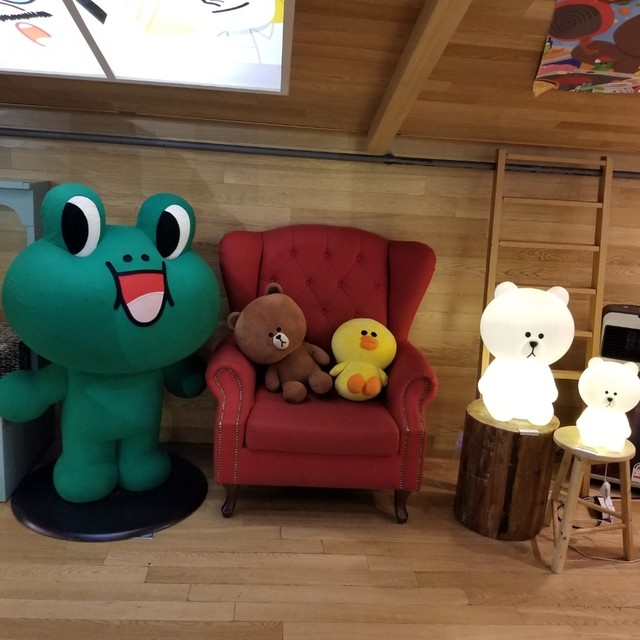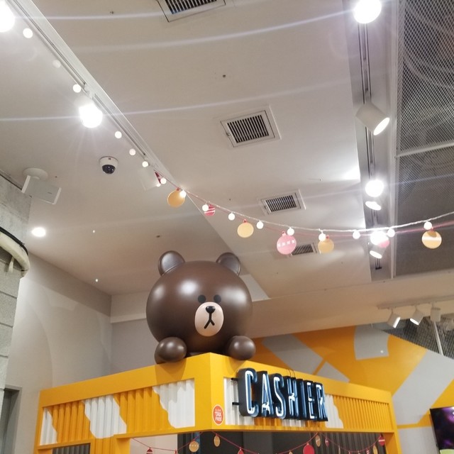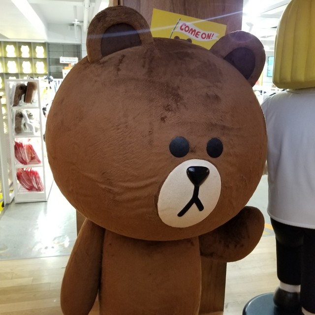 こちらま入口にはなんともインスタ映えします、巨大なLINEのキャラクター・ブラウンが座っているのです。
