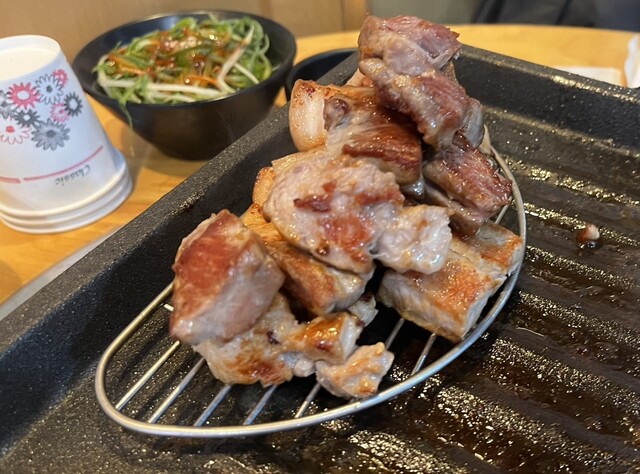 明洞は観光地だけあり日本人も多く、店員さんも日本語がお上手にて、此方も日本人多く、日本語お上手な店員さんにお肉を焼いて切って頂きました。野菜系の付属品はお代わり自由にて店員さんも嫌な顔せず運んでくれ、コスパ良...