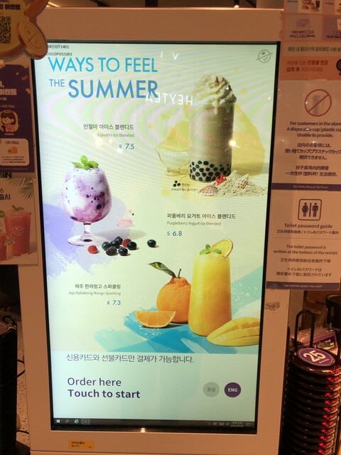 韓国の人気チェーン店のカフェ。カウンター注文します。お味は普通に美味しい。