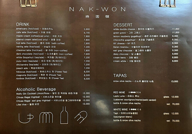 メニューには、ドリンク、デザート、アルコール、タパスなどが並びます。