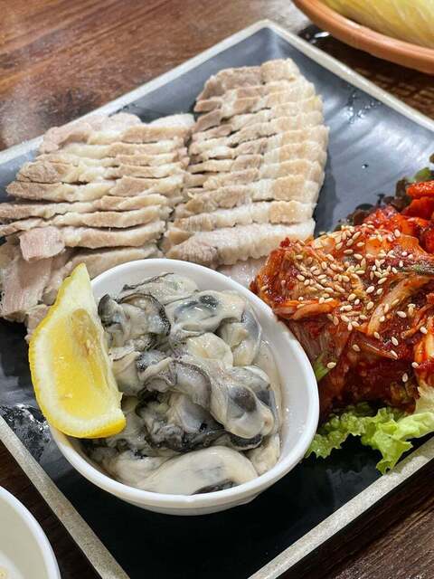 牡蠣もオン!!!!包んで一口で食べたら、マジ最高♡ソジュで流す(*´艸`)