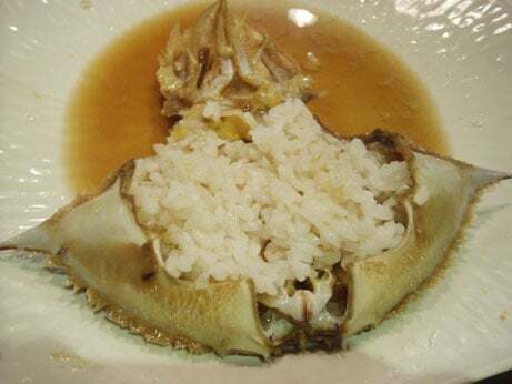 カニのこうらにご飯をつめてタレをかけて食べるのが絶品
