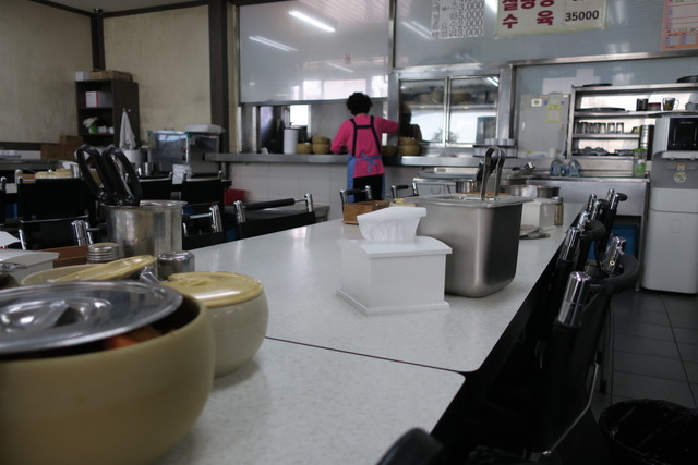 店の中に入ると、おお、なんじゃこれ。何と豚骨の美臭、微臭が。ソルロンタンは牛ですからね。韓国通のマイレビュアーさんでさえ、こんな店は初めてとか。期待が持てます。