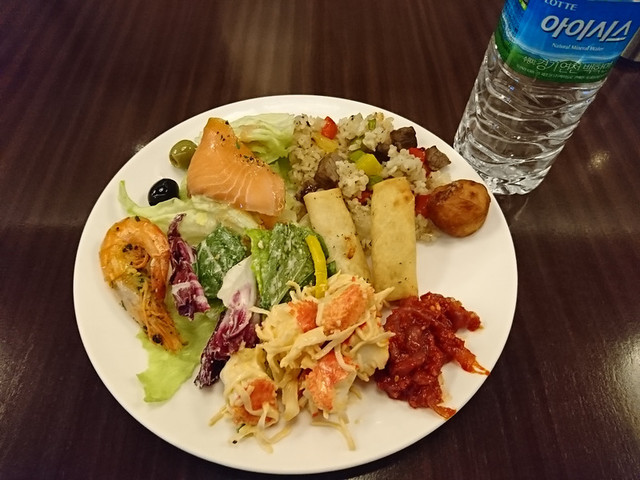 本日もシェラトンソウルパレスホテルの12階クラブラウンジで夕飯をいただきました(カクテルタイム)。シャンパン、ビール、ワインなどアルコール類も充実してます。サラダ類も含め料理も豊富に並んでいます。SP...