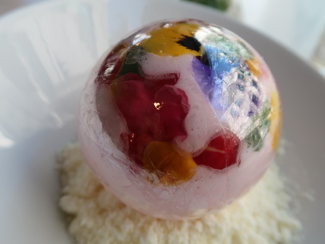 シュガーボールを割り、いちごソースをか...