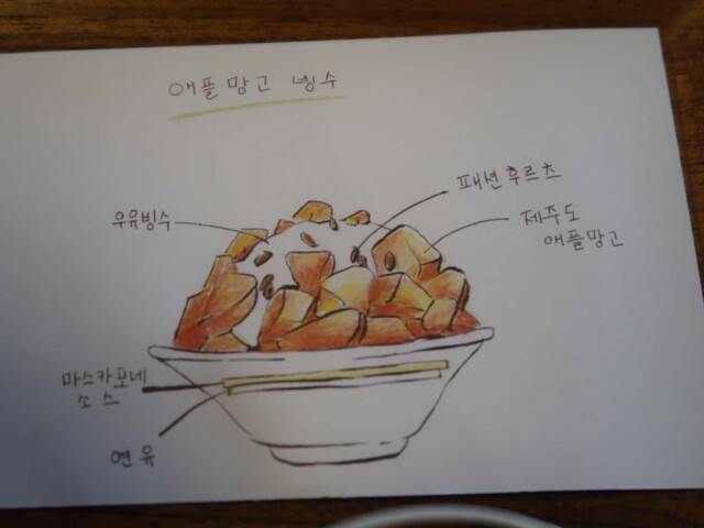 メニューがオールハングルでわからん…Google翻訳で画像翻訳したら暗号になった…ので茶を諦めてかき氷のみ