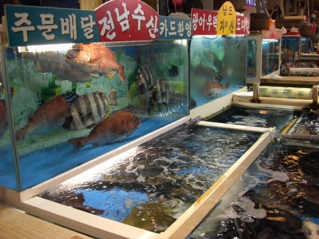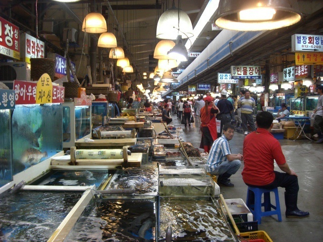 ソウルの中でも大きな水産市場、ノリャンジン。最近はだいぶ観光地化されてきていますが新鮮な魚介類をふんだんに食べられるので人気があります。