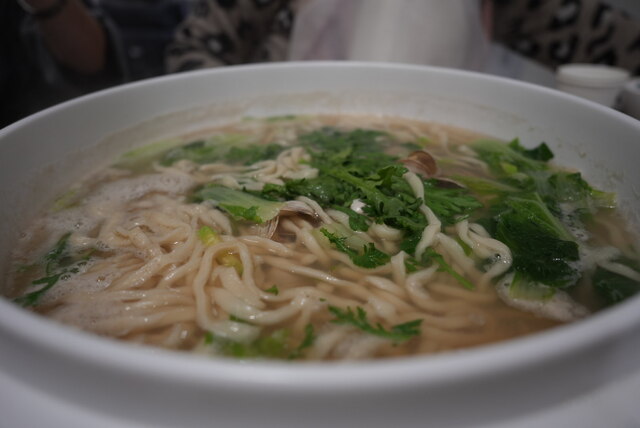 うどん4人前をオーダーしたら、一人ずつではなく巨大なバケツのような容器に4人分入って出てきた。