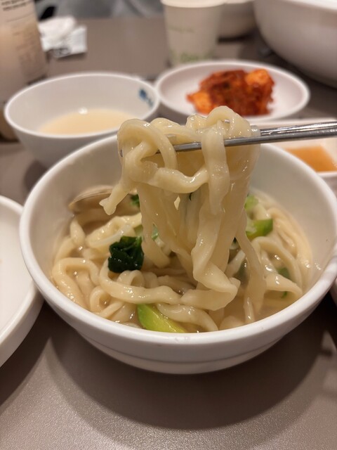 シオフキガイをふんだんに使ったカルグクス(うどん)とチヂミが旨い。