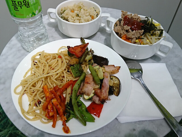 アシアナラウンジが激混みかつしょぼかったので、PP使ってSkyhubラウンジへ。こっちのがゆったりしてて、空いていて、ご飯もお酒も充実。